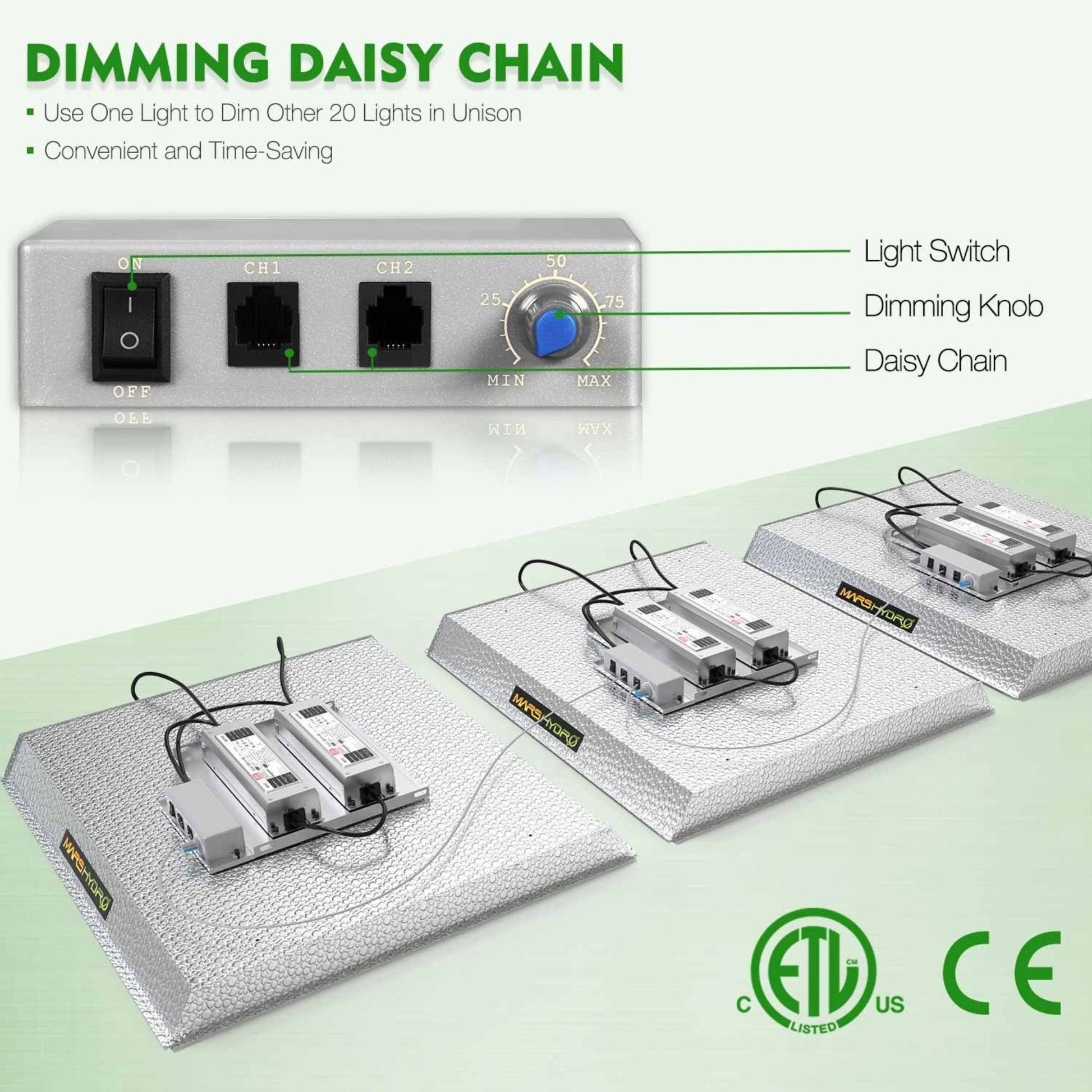 With the daisy chain system, the Mars Hydro 450W LED Grow Light TS 3000 allows for up to 20 lights to be connected in series. This feature offers unparalleled control over light intensity, allowing growers to customize the lighting setup according to their specific needs. Whether you have a small indoor garden or a larger commercial setup, the daisy chain system ensures that your plants receive the perfect amount of light for optimal growth.