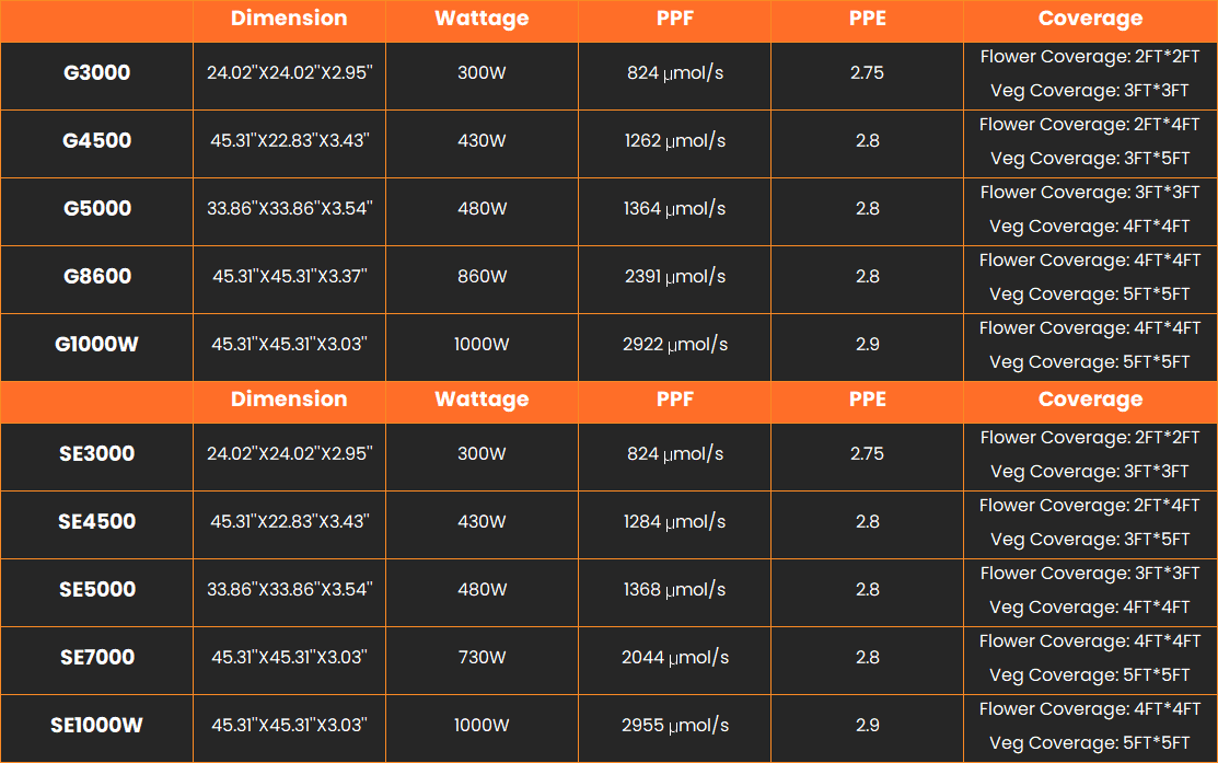 The G3000 is designed to be a budget-friendly option without compromising on performance. Its high-quality illumination, energy efficiency, and durable design make it an accessible choice for both novice and experienced growers, offering long-term value and reliable performance.